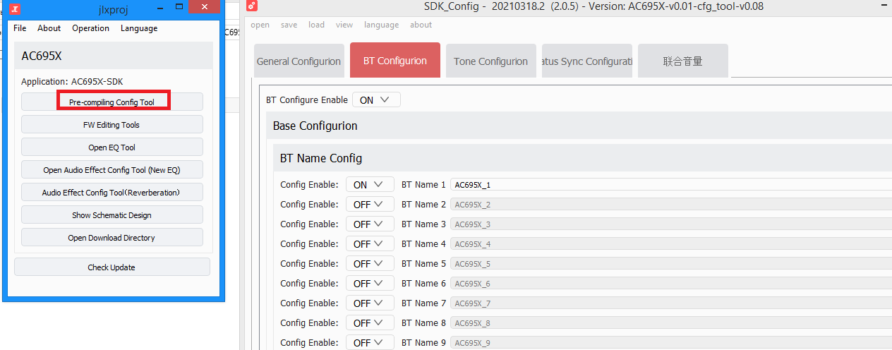 AC695X_config_tool запускать. она на луа с файлом jlxproj, чёрт знает что)