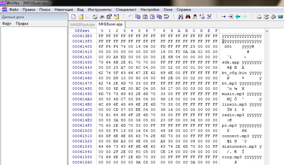 Для вытаскивания файлов (sdk.app, bt_cfg.bin и проч) из MH18Flash.bin и MH18user.app все оказалось проще.