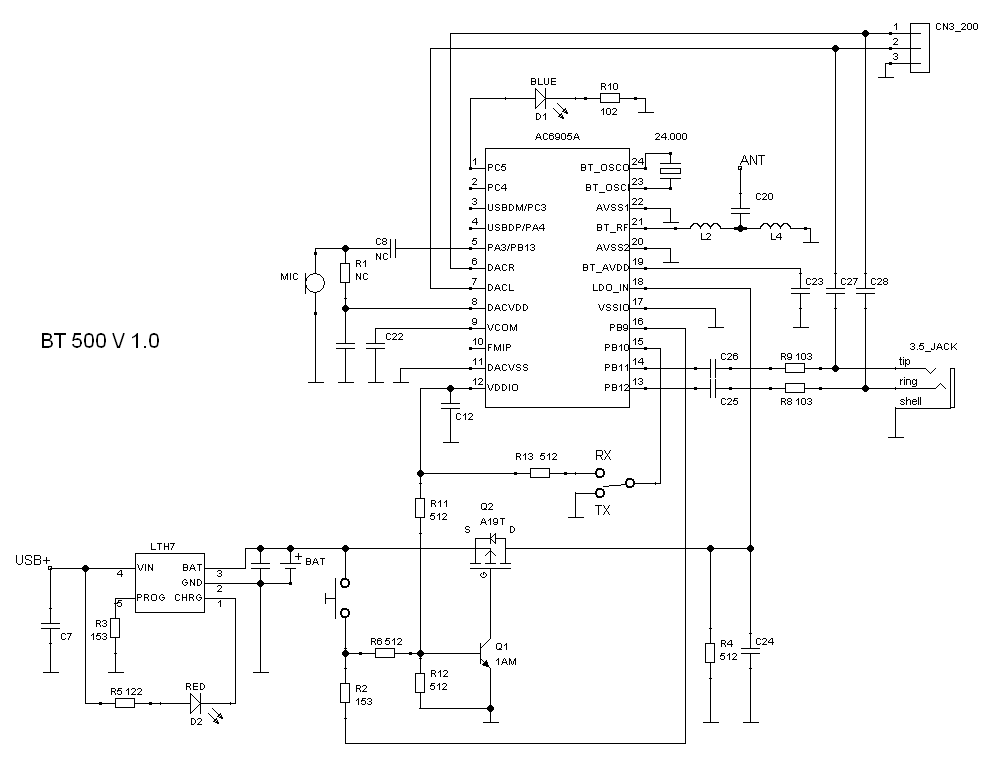 Приветствую всех. Попробовал прошить АС6905А из сдк из шапки. Сразу же после ресета начинает страшно греться. Заливаю родную прошивку - работает нормально. Но если я дальше так буду искать в чем дело то думаю не долго протянет. Схема прилагается. переключатель стоит на RX. Вроде бы ни через какую ногу большой ток идти не может. Вопрос - почему греется? Сдк пробовал и эмиттер и наушники.