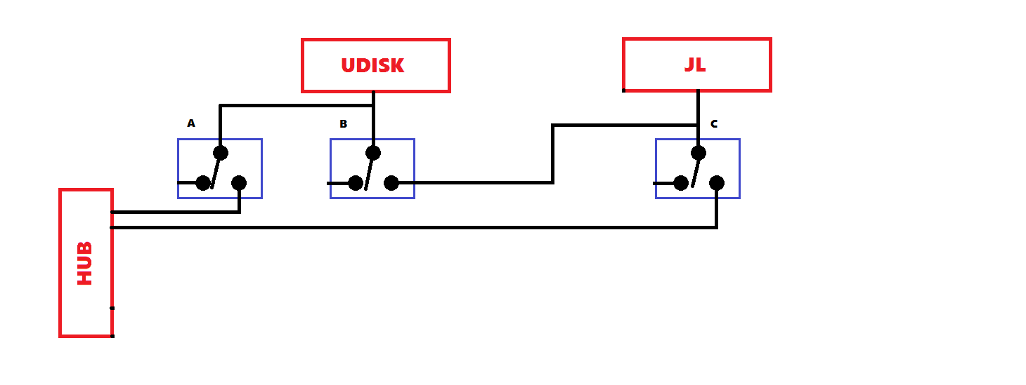 Все таки остановлюсь тупо на варианте где JL подключается или к хабу или к флешке.