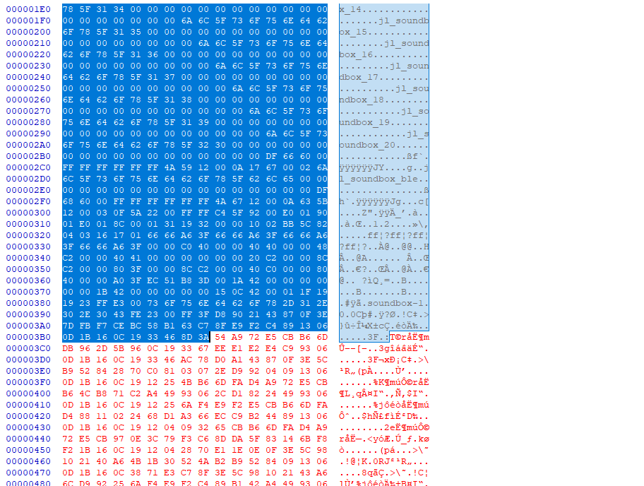 от 0x20 до 0x3B9, конец не содержит FFFFFFF, как в других файлах.