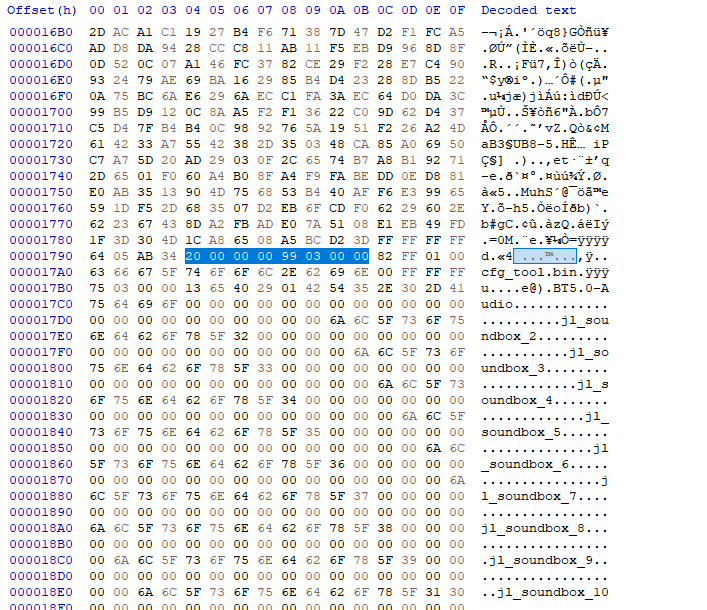 Я нашел ссылку на cfg_tool.bin после раздела tone, однако адреса, похоже, неверны.