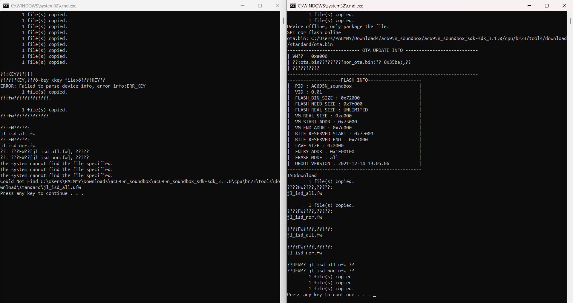 Yes i have that but when i try isd_download without connected on right side and when i connected the board it on left side idk why it not work