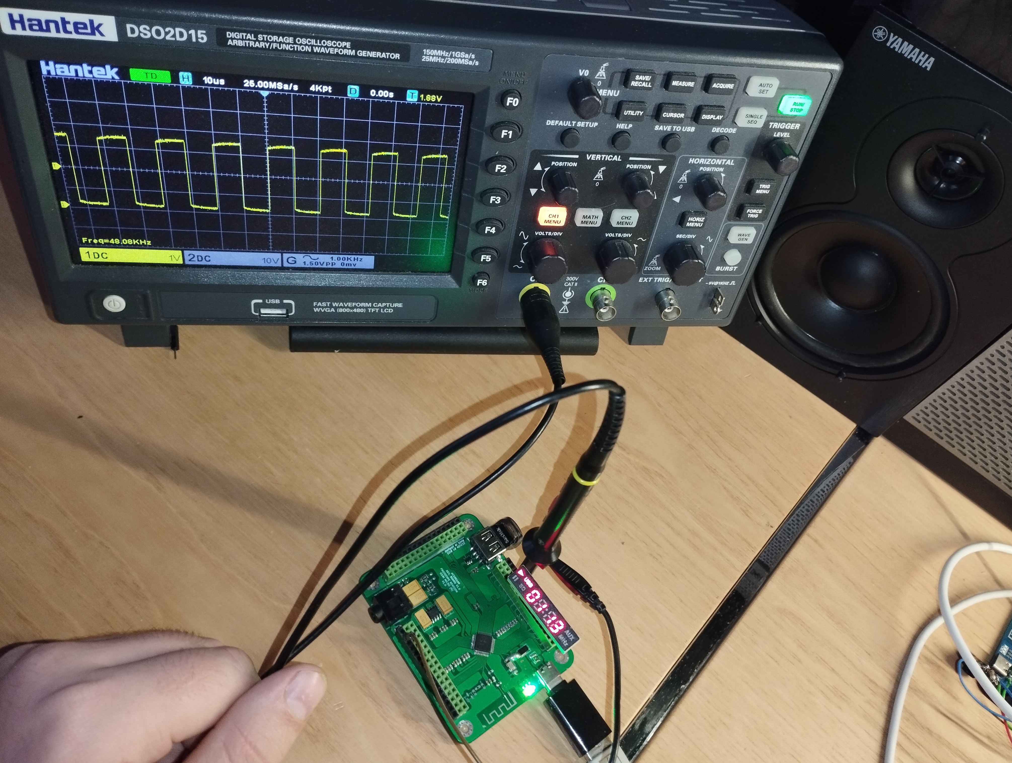 Кстати, по идее если воткнуть флешку с музыкой, и посмотреть осциллографом на ноге LRCLK, то на LRCLK будет частота соответствующая частоте дискретизации.