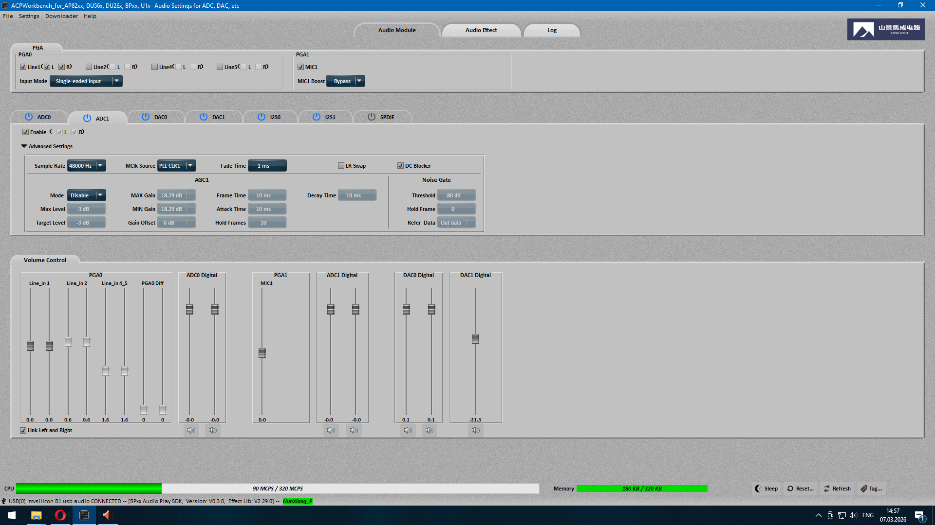 DSP configuration software for windows: https://archive.org/details/bdm-bru-pcu … v-2.24.2-2 . This sw is working with small board but does not work with mixer (cant connect to usb B1 mv silicon...)