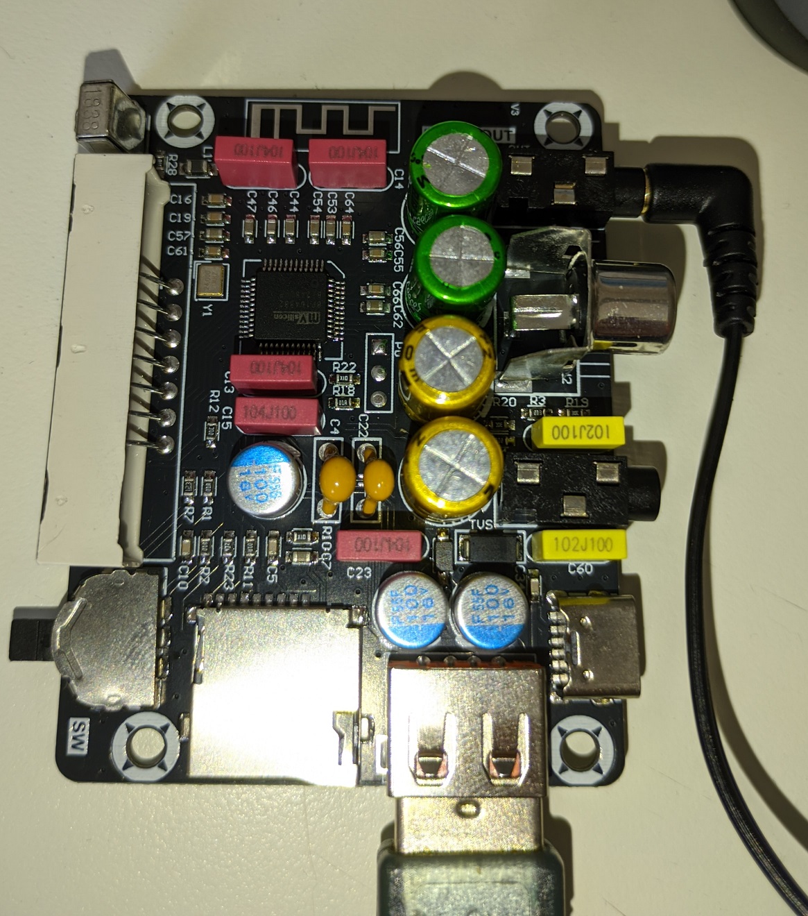 The other is small board from aliexpress (Nvarcher Bluetooth 5.0 DSP Audio Amplifier Tuning Board 40-band EQ Support TWS)
